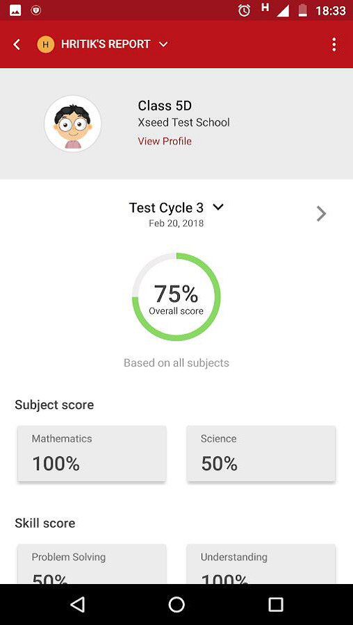 Students take a monthly test in school and parents get a regular update, on the XSEED Parent App, which shows the progress of their child. What is unique about the report is that it shows how the child is doing on Skill Development – Conceptual Understanding and Problem Solving. The report also shares very specific feedback on strengths and areas in which the child may need development